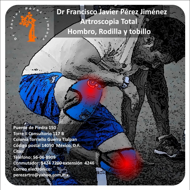El Dr. Francisco Javier Pérez Jiménez es un especialista en Ortopedia y Traumatología, con Alta Especialidad en Artroscopia ( hombro, rodilla y tobillo ) y Cirugía del deporte, egresado del Sector Salud, Hospital General de México, atiende a sus pacientes en el Hospital Médica Sur ubicado en Tlalpan en la Ciudad de México.