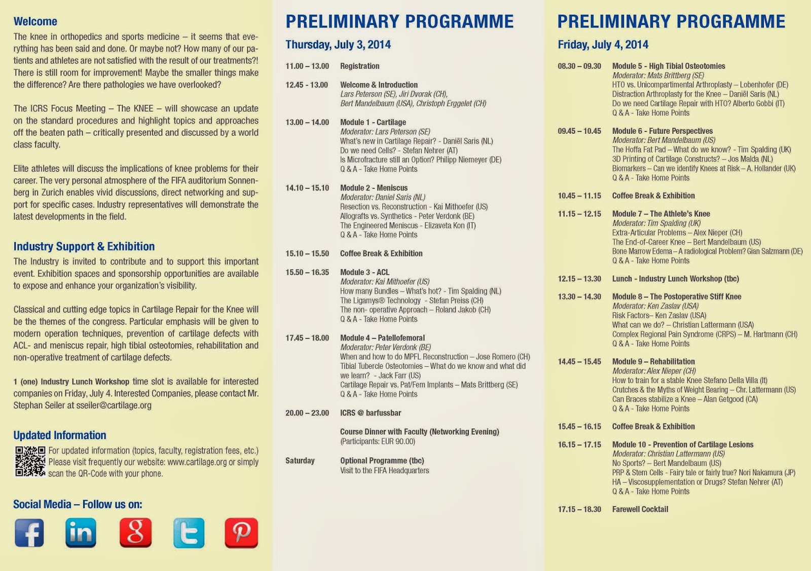 http://bit.ly/1geHkVBMats Brittberg, SE – Stefano Della Villa, IT – Jiri Dvorak, CH, Christoph Erggelet, CH – Jack Farr, USA – Alan Getgood, CA – Alberto Gobbi, IT – Michael Hartmann, CH – Anthony Hollander, UK – Roland Jakob, CH – Elizaveta Kon, IT – Christian Lattermann, USA – Philipp Lobenhoffer, DE – Jos Malda, NL – Bert Mandelbaum, USA – Kai Mithoefer, USA – Norimasa Nakamura, JP – Stefan Nehrer, AT – Philipp Niemeyer, DE – Alex Nieper, CH – Lars Peterson, SE – Stefan Preiss, CH – Jose Romero, CH – Gian Salzmann, DE – Daniël Saris, NL – Tim Spalding, UK – Peter Verdonk, BE – Ken Zaslav, USA